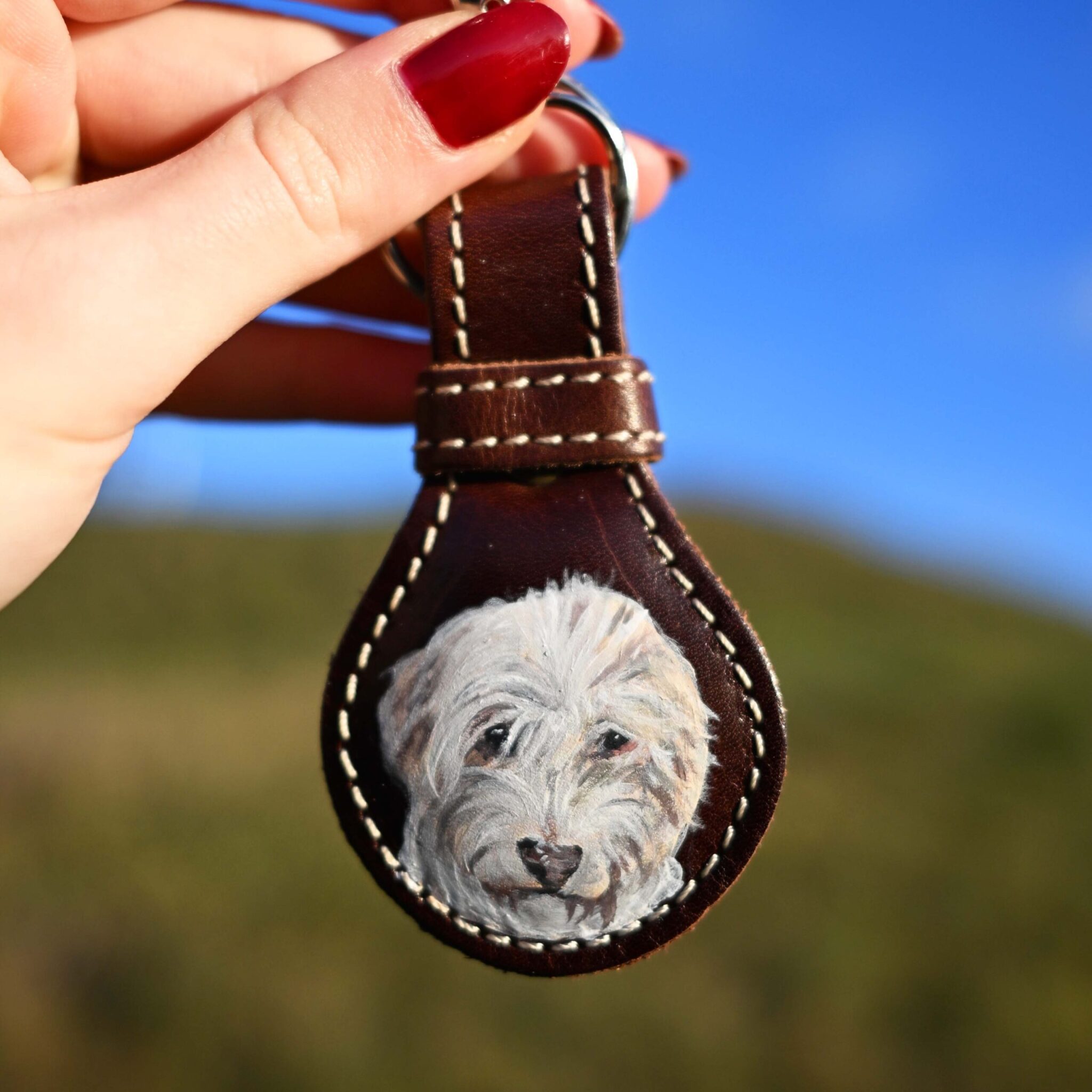 Ręcznie malowany brelok ze skóry naturalnej. Każdy egzemplarz to ręczna praca, precyzyjnie malowana i zabezpieczona dla trwałości.